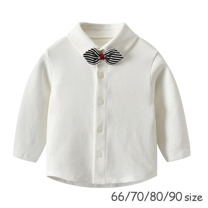 シャツ トップス 白シャツ ベビー 赤ちゃん 子供服 キッズ 男の子 女の子 蝶ネクタイ リボン ボーダー 前開き ボタン 長袖 おしゃれ シンプル Top おとりよせ Com 通販 Yahoo ショッピング